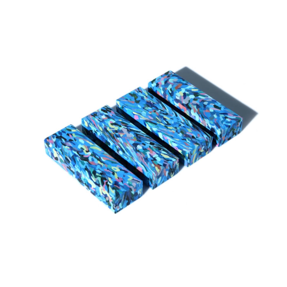A set of 4 plastic blocks is made from recycled plastic. They can be used as ornament trays, soap trays, tea coasters, and decorative magnets.