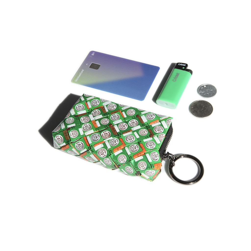버려진 과자봉지로 만든 지갑. 동전, 카드, 이어폰 넣기 좋은 사이즈.