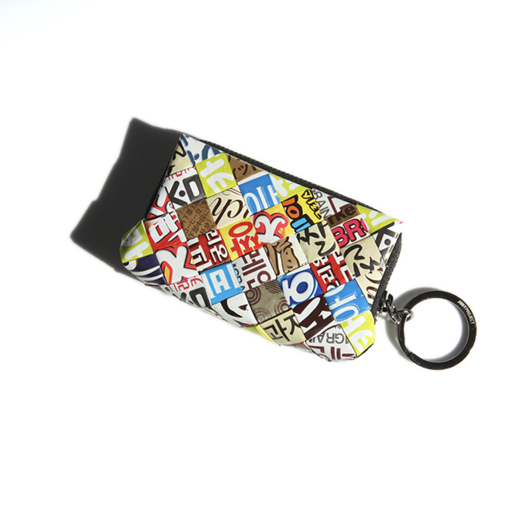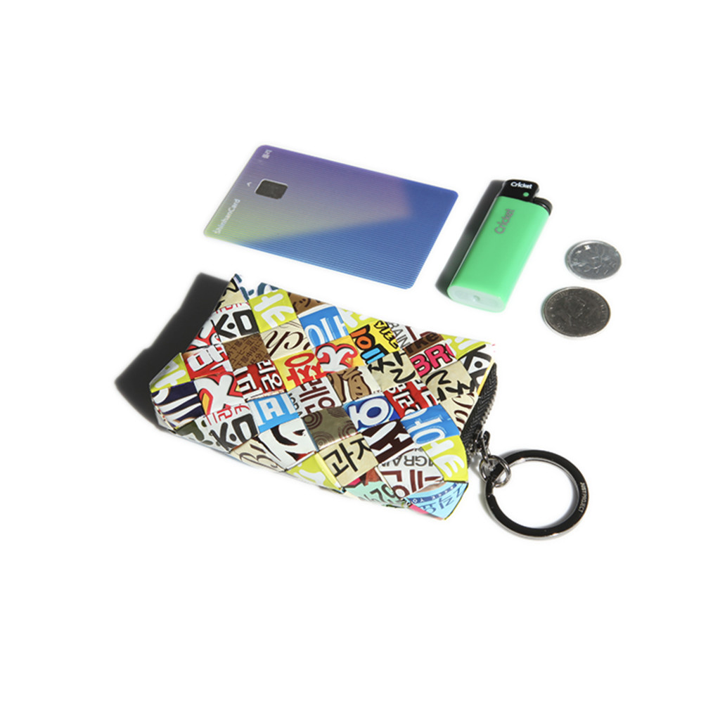 버려진 과자봉지로 만든 지갑. 동전, 카드, 이어폰 넣기 좋은 사이즈.