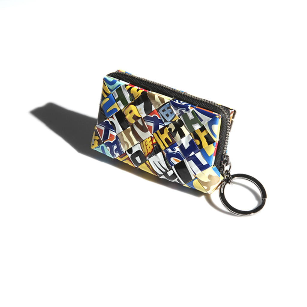 버려진 과자봉지로 만든 지갑. 동전, 카드, 이어폰 넣기 좋은 사이즈.