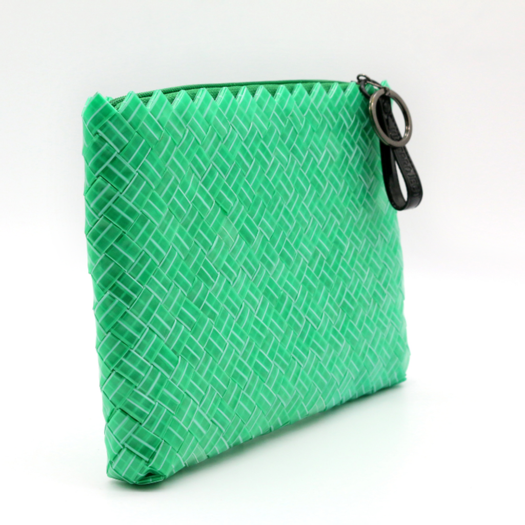 버려진 빨대로 만든 파우치, 책, 화장품, 위생용품 등 넉넉하게 담기 좋은 파우치.