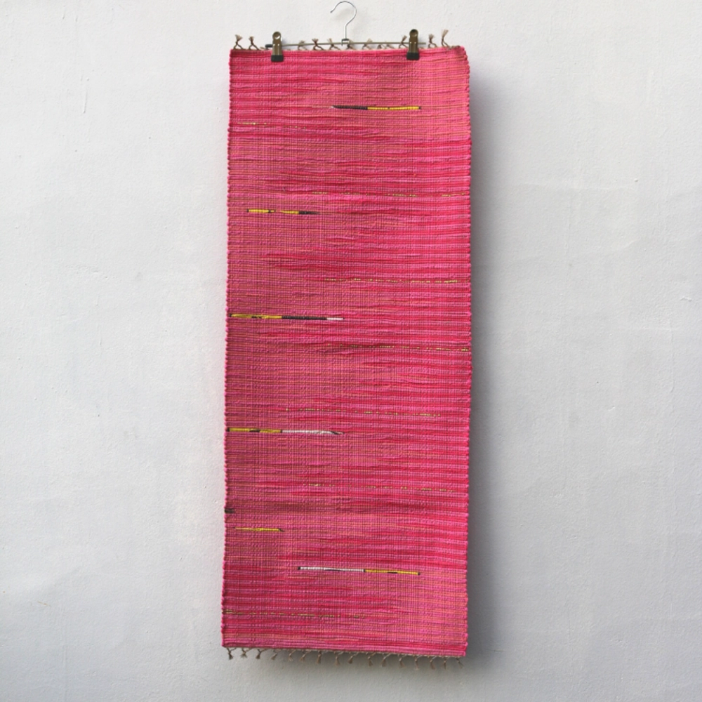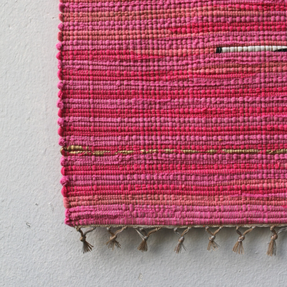 헌 티셔츠를 손베틀로 직조한 매트. 침대 밑 러그, 복도 러너등으로 사용하기 좋은 사이즈.
