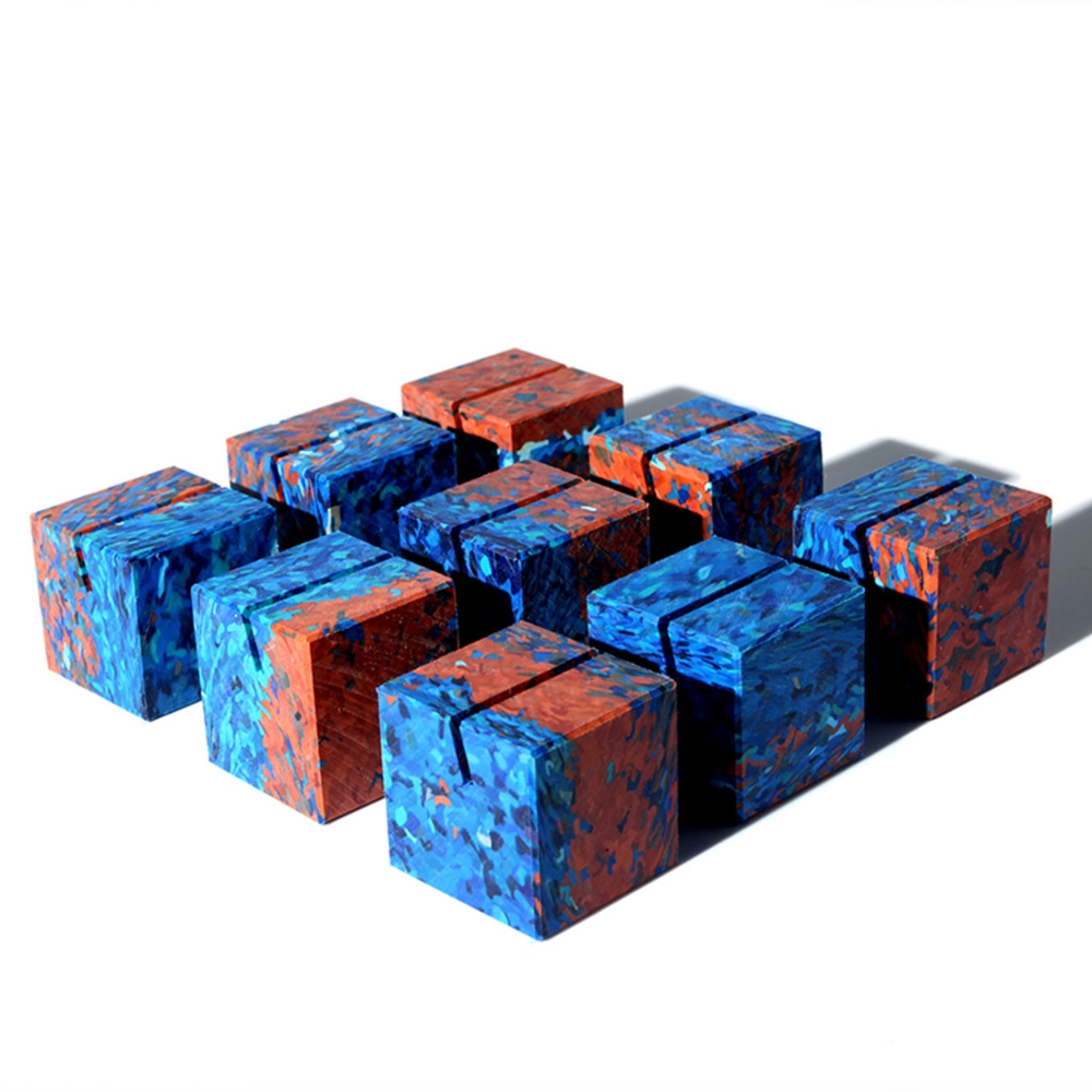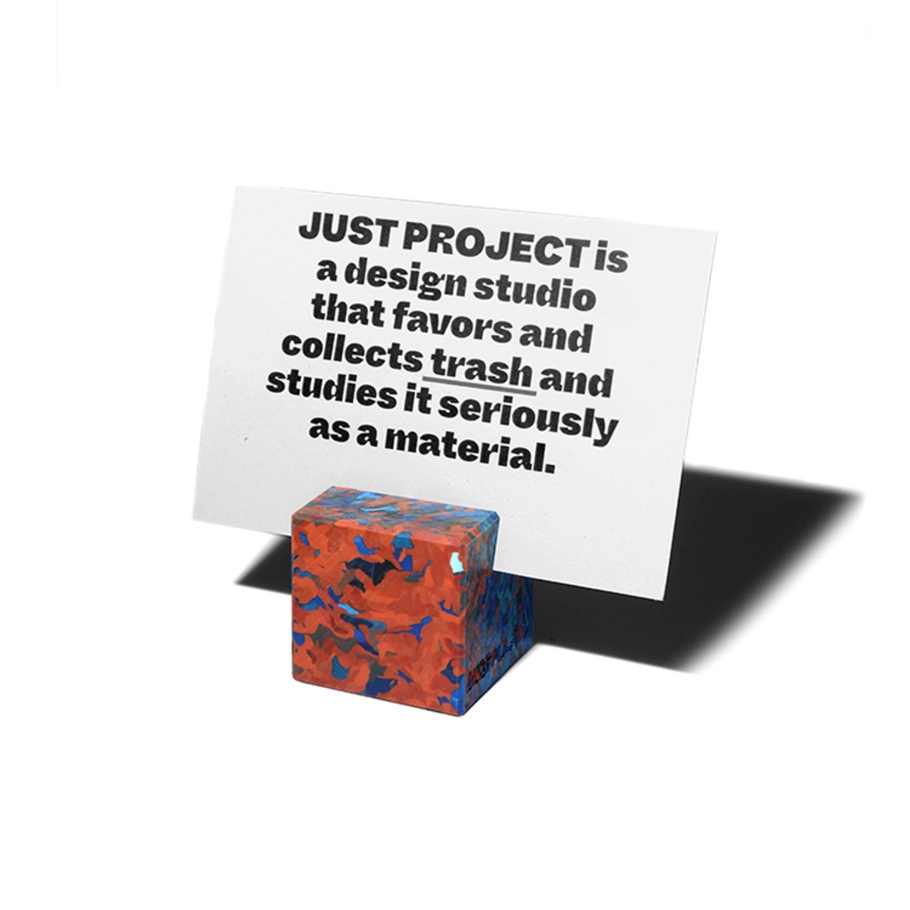 리사이클 플라스틱으로 제작한 큐브형 홀더입니다. 명함, 사진, 소개지, 인센스스틱 등을 꽂아 사용할 수 있습니다.