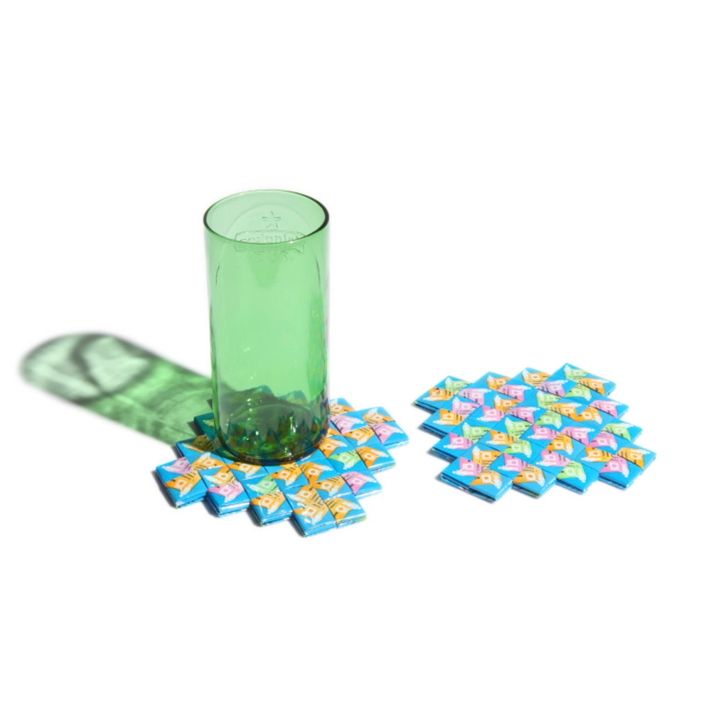 버려진 식품봉지로 만든 양면 코스터 세트. (2개-1세트)