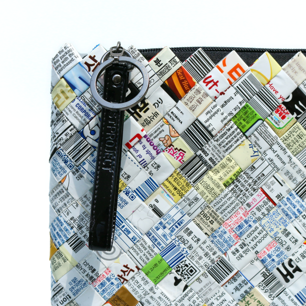 버려진 과자봉지로 만든 케이스.