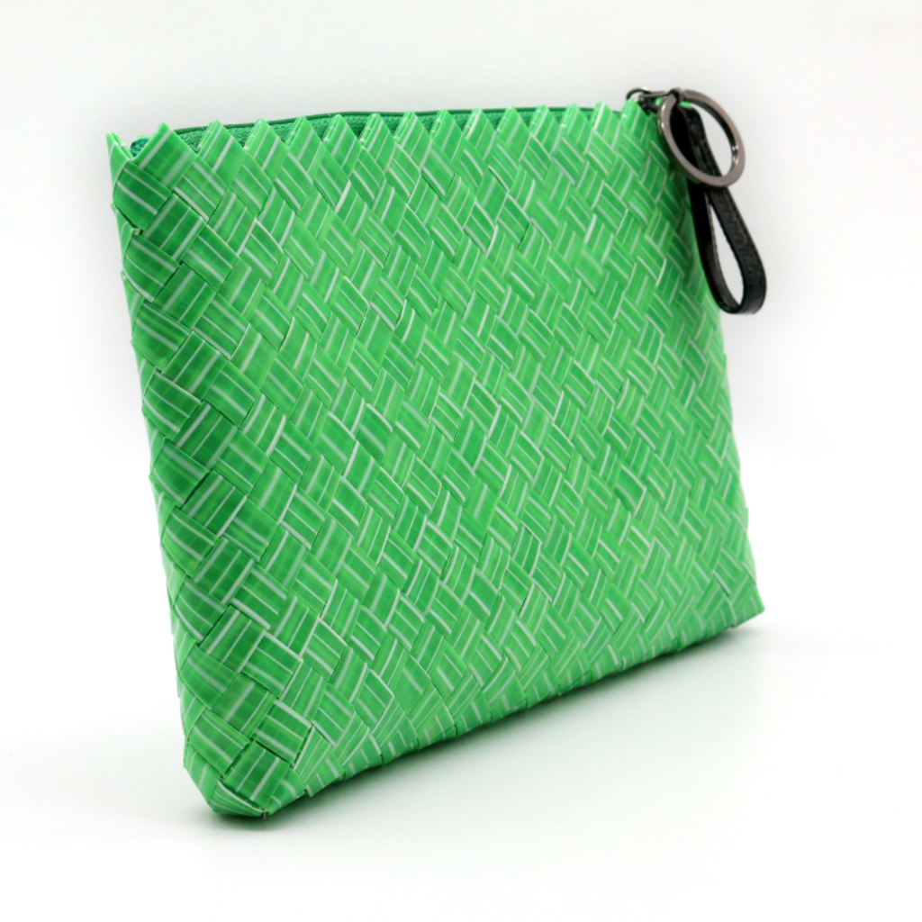 버려진 빨대로 만든 파우치, 책, 화장품, 위생용품 등 넉넉하게 담기 좋은 파우치.
