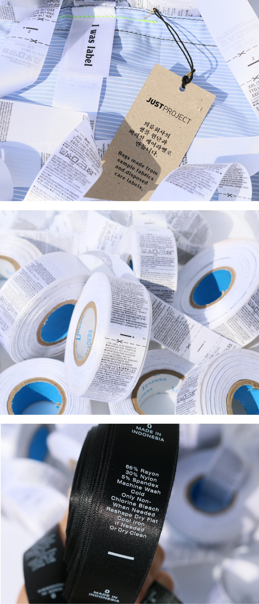 의류회사의 샘플원단, 폐기된 케어라벨