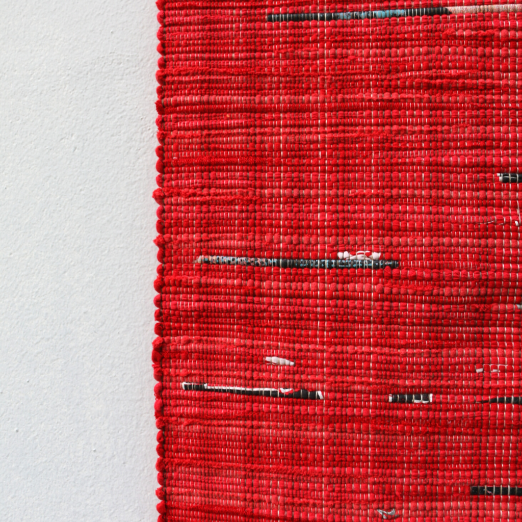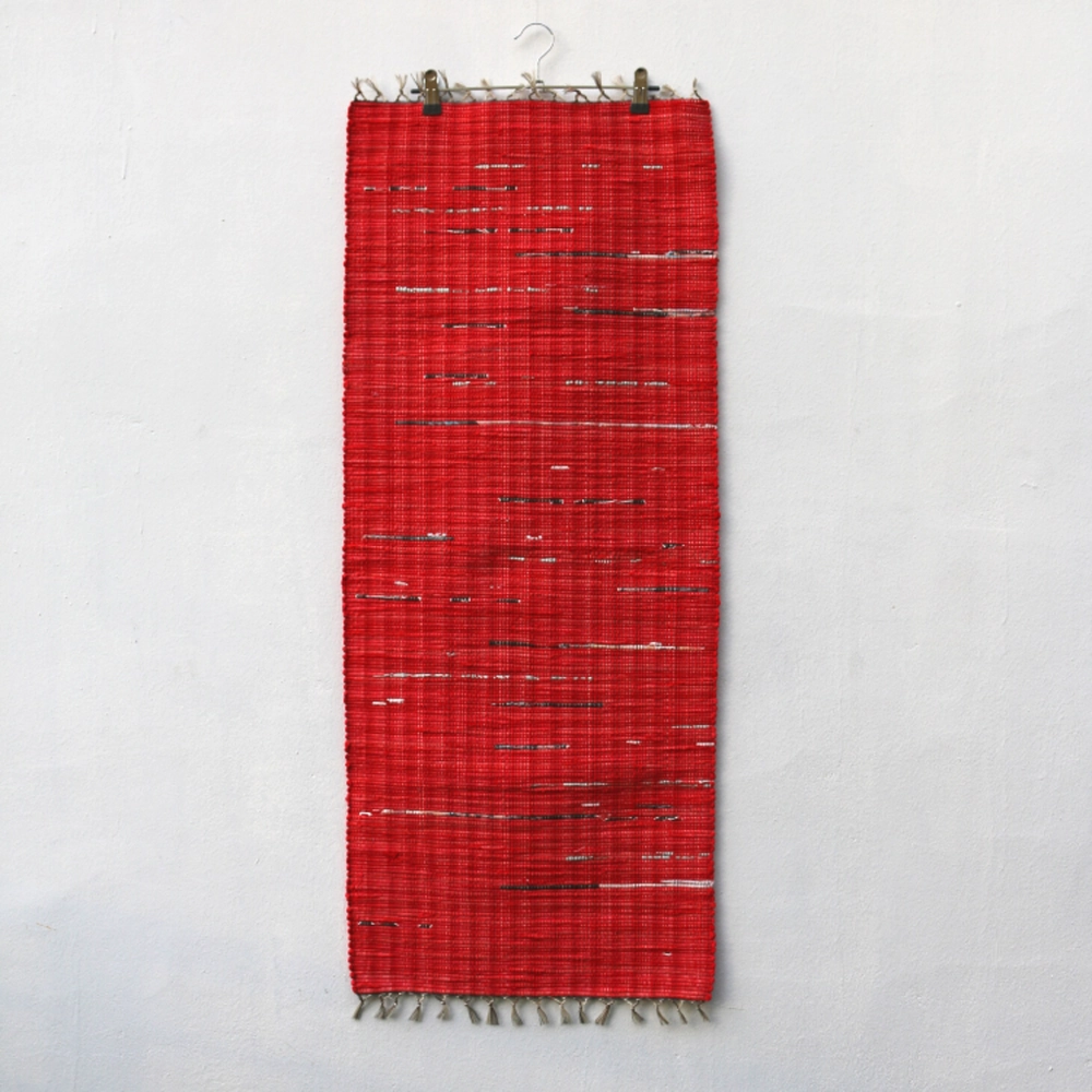 헌 티셔츠를 손베틀로 직조한 매트. 침대 밑 러그, 복도 러너등으로 사용하기 좋은 사이즈.