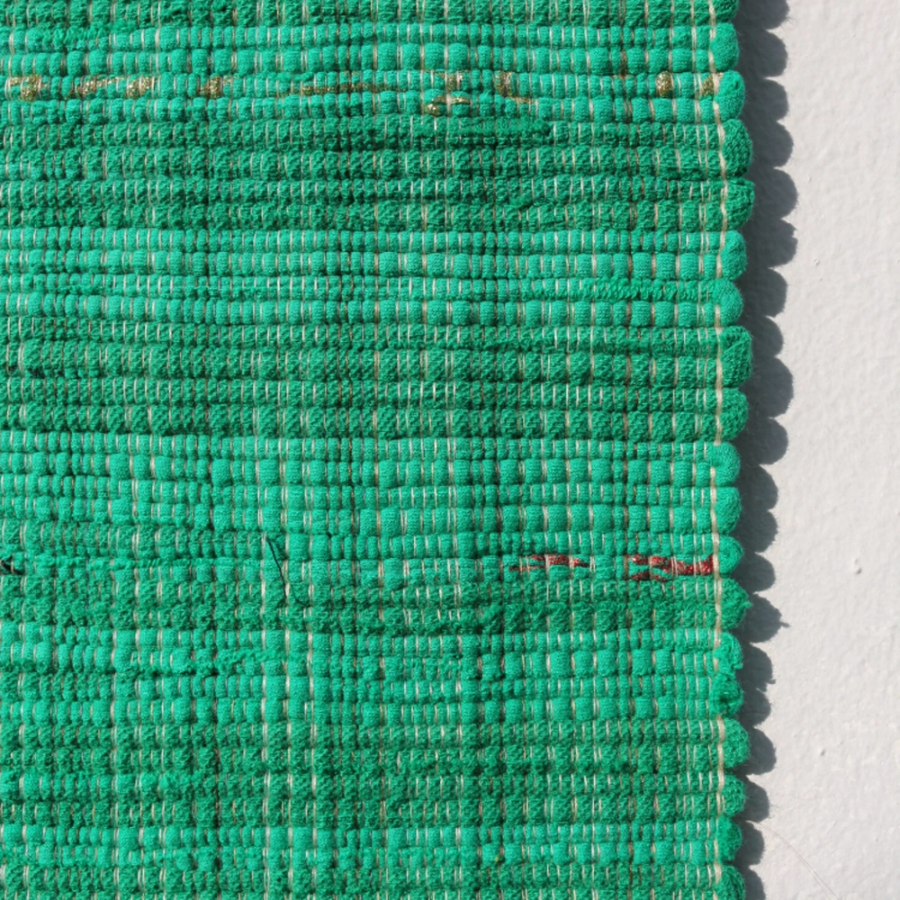 헌 티셔츠를 손베틀로 직조한 매트. 주방 매트, 도어 매트로 사용하기 좋은 사이즈.