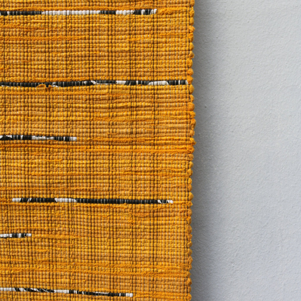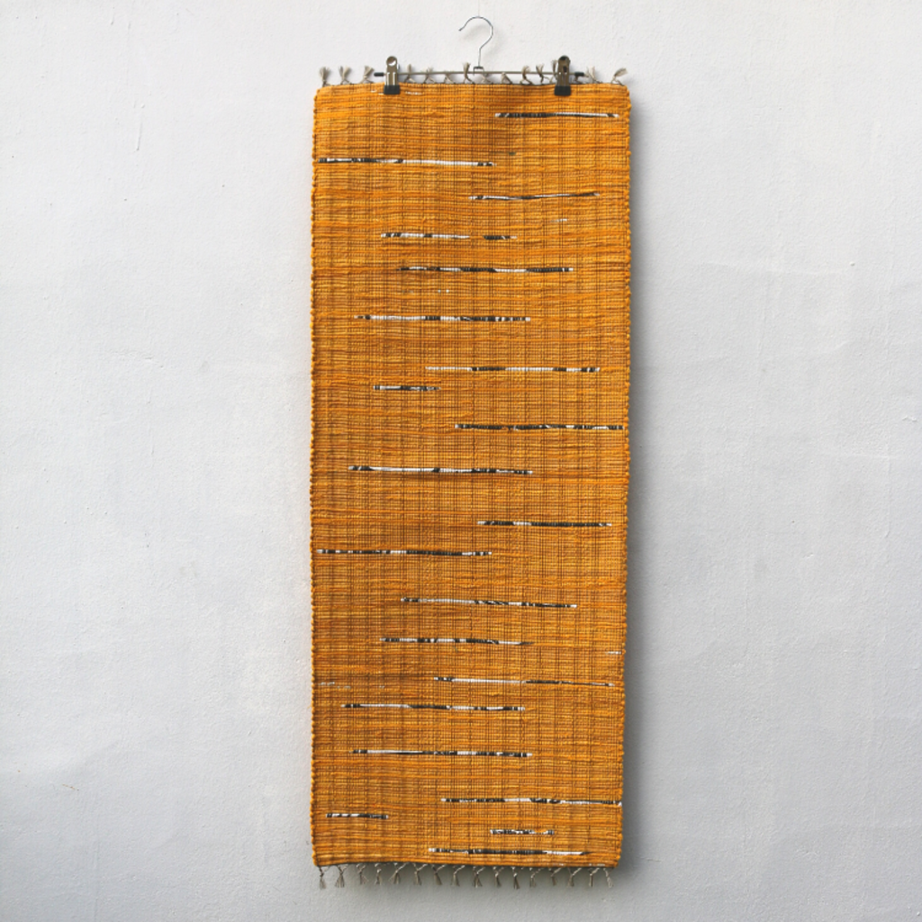 헌 티셔츠를 손베틀로 직조한 매트. 침대 밑 러그, 복도 러너등으로 사용하기 좋은 사이즈.