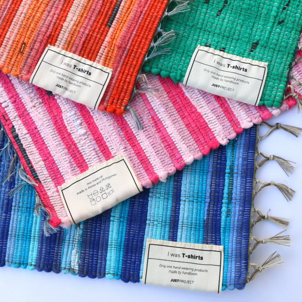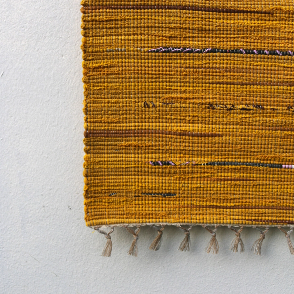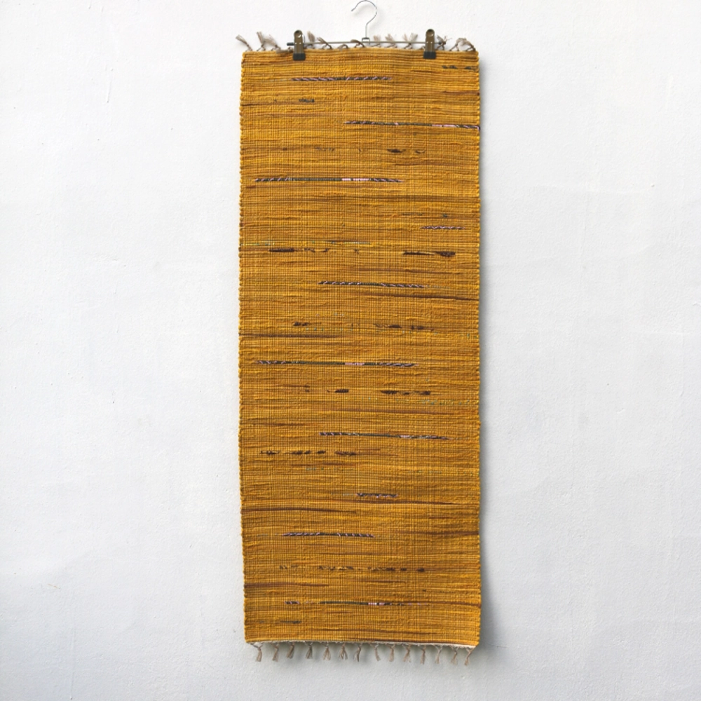 헌 티셔츠를 손베틀로 직조한 매트. 침대 밑 러그, 복도 러너등으로 사용하기 좋은 사이즈.