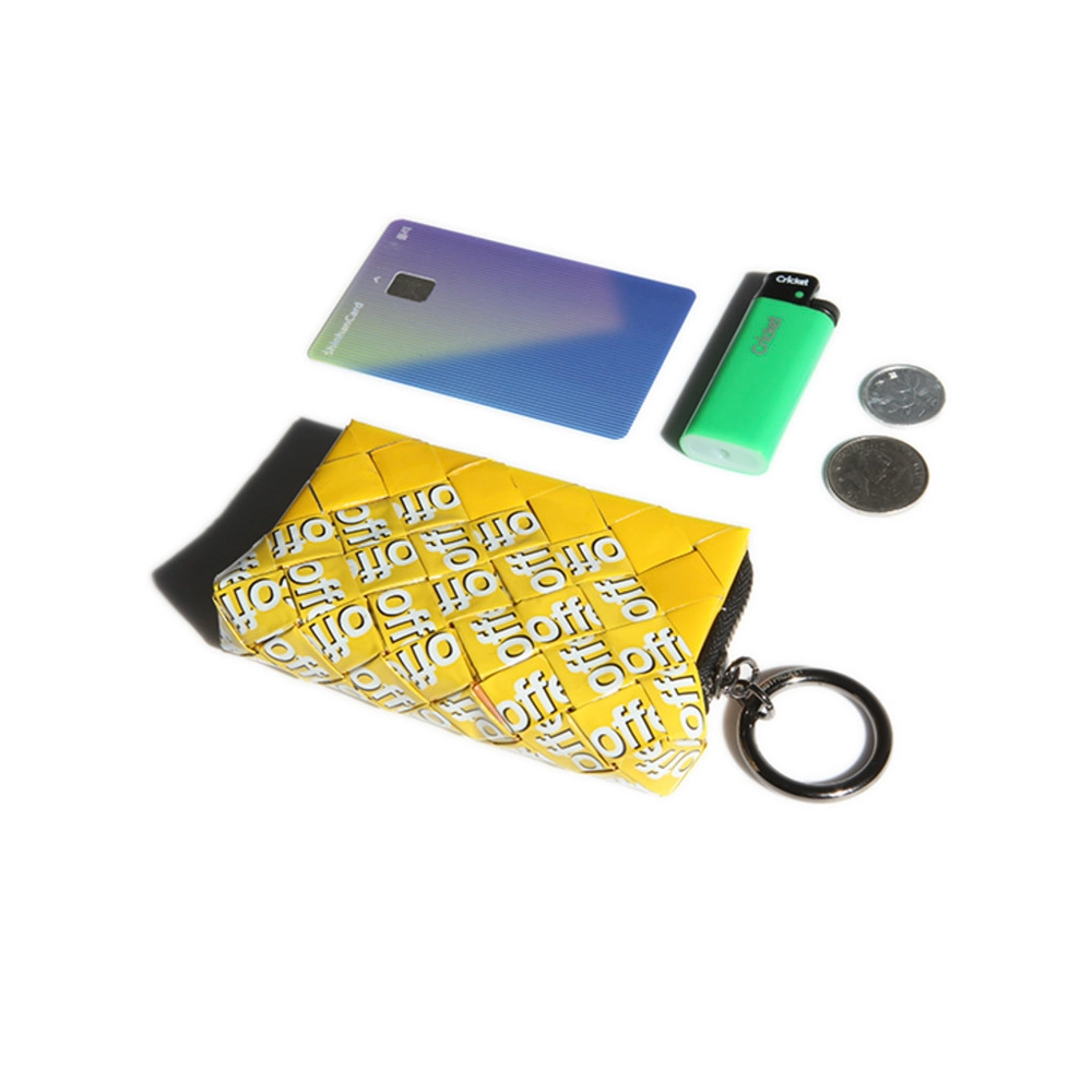 버려진 과자봉지로 만든 지갑. 동전, 카드, 이어폰 넣기 좋은 사이즈.