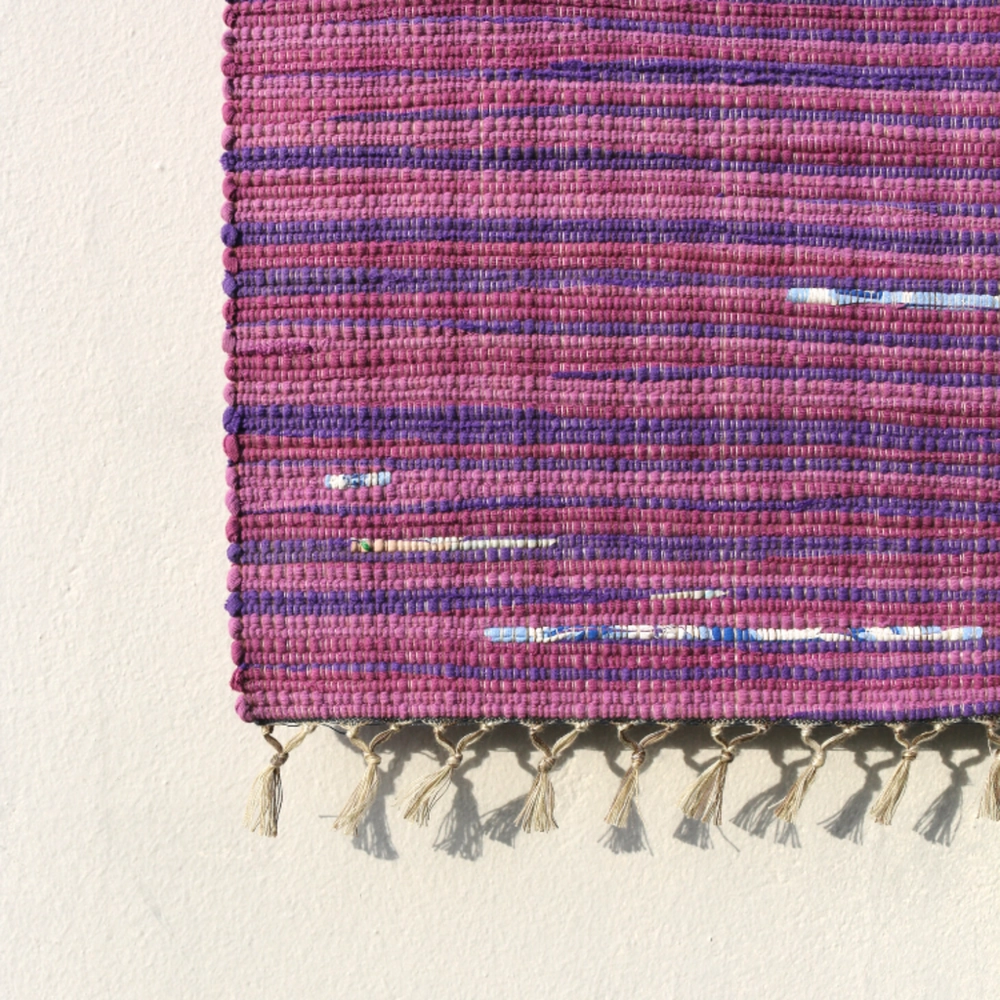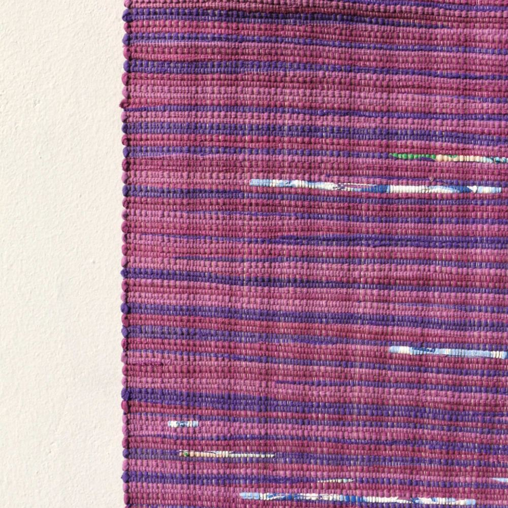 헌 티셔츠를 손베틀로 직조한 매트. 주방 매트, 도어 매트로 사용하기 좋은 사이즈.