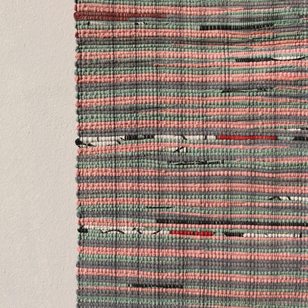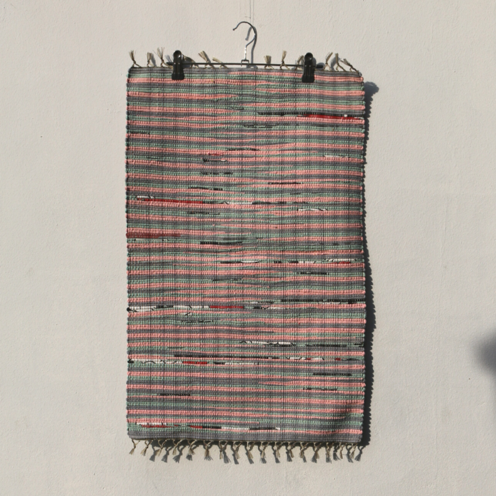 헌 티셔츠를 손베틀로 직조한 매트. 주방 매트, 도어 매트로 사용하기 좋은 사이즈.