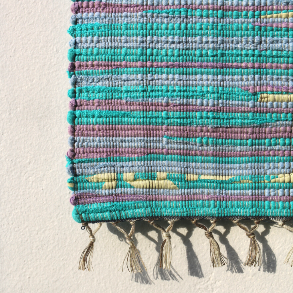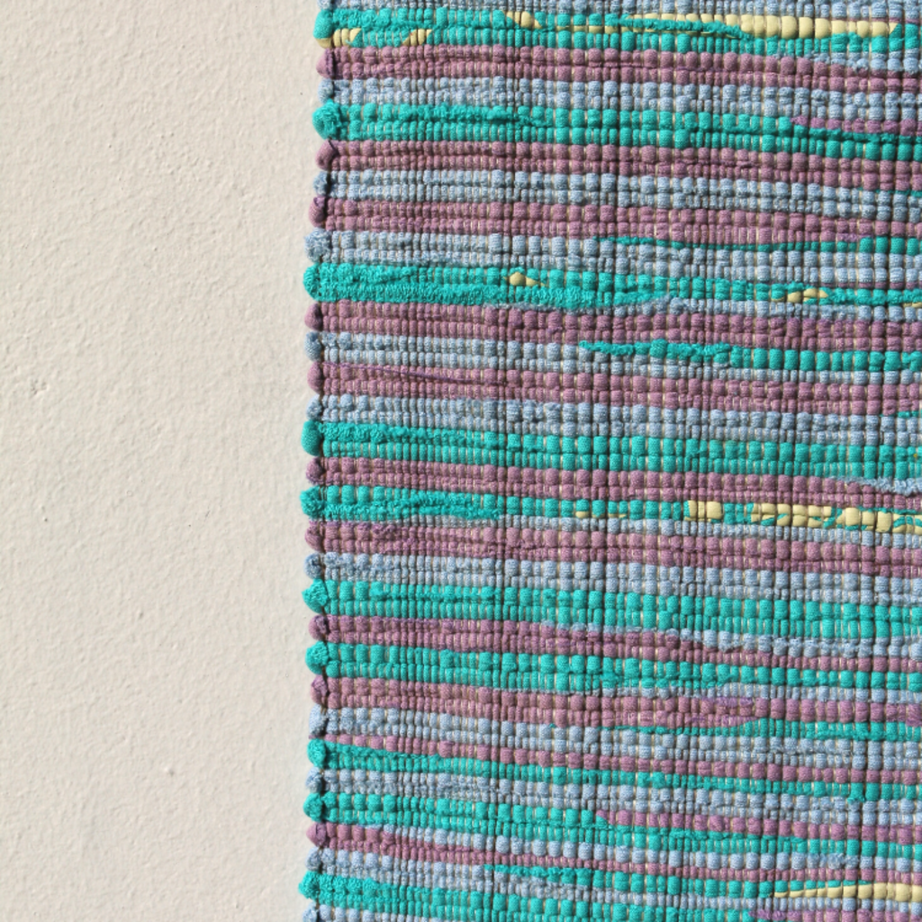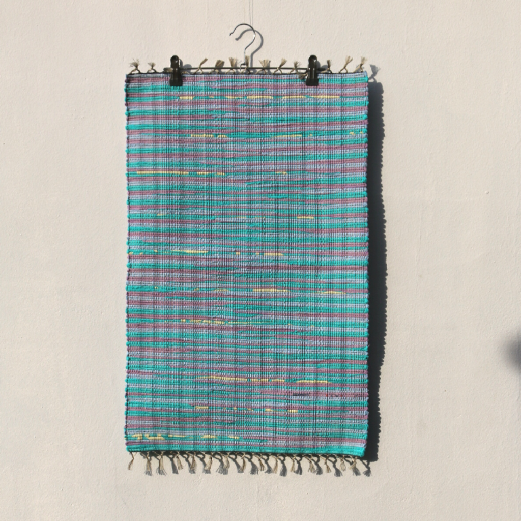 헌 티셔츠를 손베틀로 직조한 매트. 주방 매트, 도어 매트로 사용하기 좋은 사이즈.