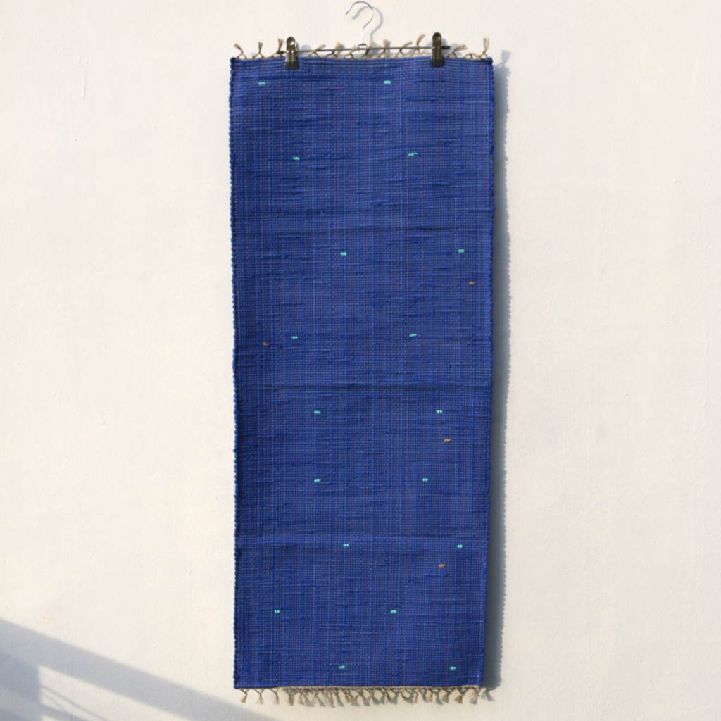 헌 티셔츠를 손베틀로 직조한 매트. 침대 밑 러그, 복도 러너등으로 사용하기 좋은 사이즈.