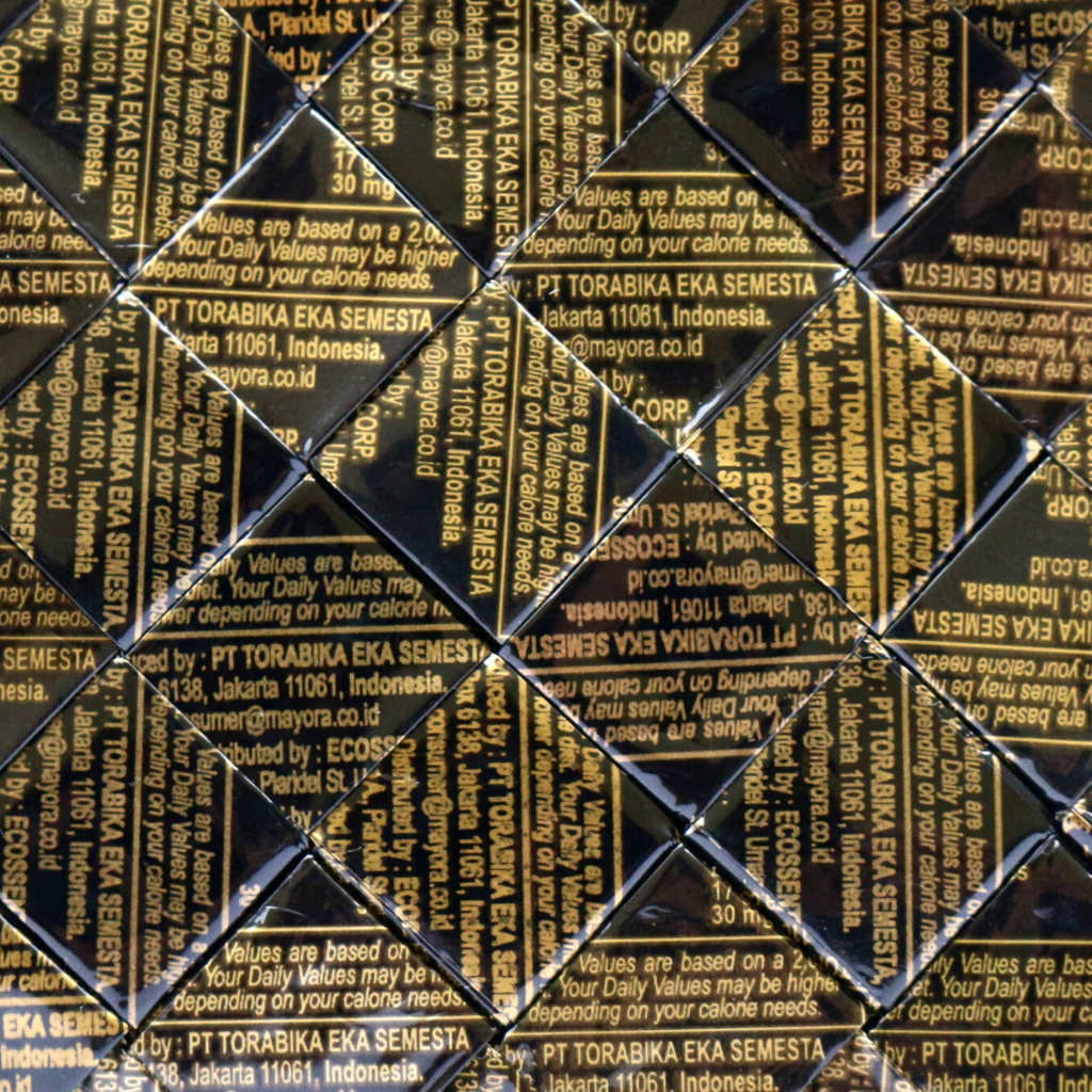 과자봉지, 라면봉지, 커피봉지 Snack, Ramen, Coffee wrappers.