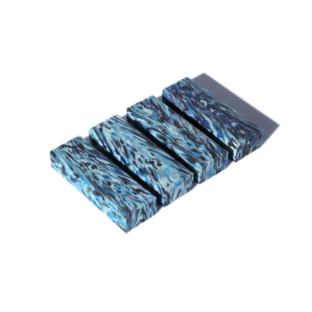 A set of 4 plastic blocks is made from recycled plastic. They can be used as ornament trays, soap trays, tea coasters, and decorative magnets.